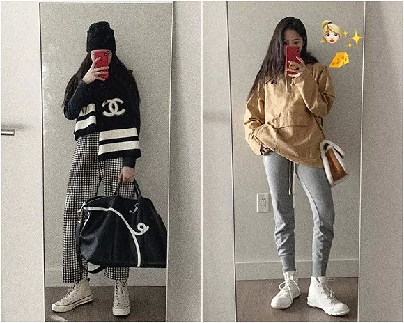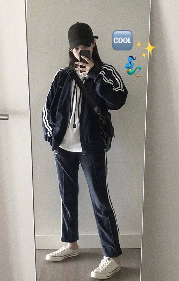 我想她的初衷应该是为了让大家看到她搭配的鞋吧,她家这面镜子是一面圆镜,不好拍到全身。▼