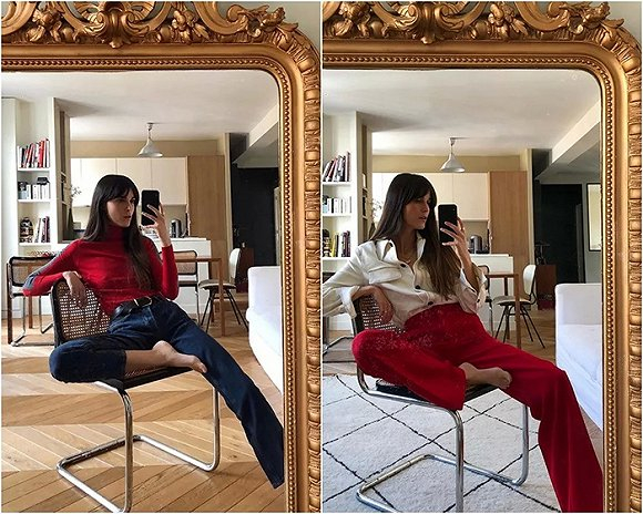 爱对镜自拍的巴黎博主Anne,家里准备了三面金边镜子。▼
