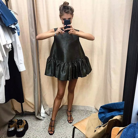越来越多的人喜欢在试衣间拍,从另一个角度看衣服上身的效果。▼