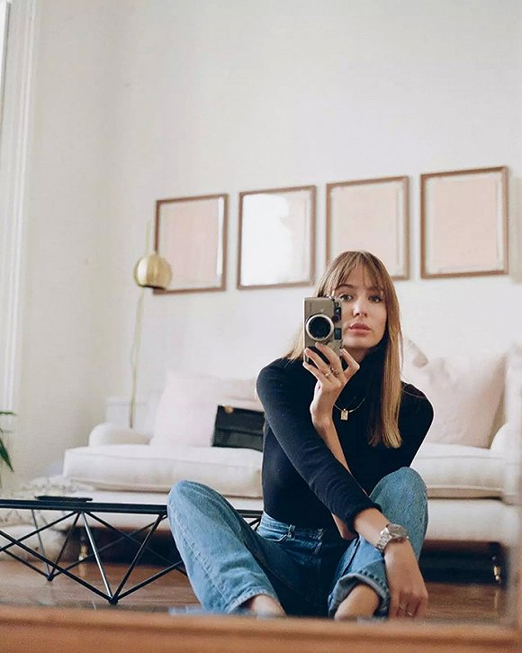 它对镜子和背景的要求更高。很多博主都会选做旧感的古铜镜,Jeanne Damas▼