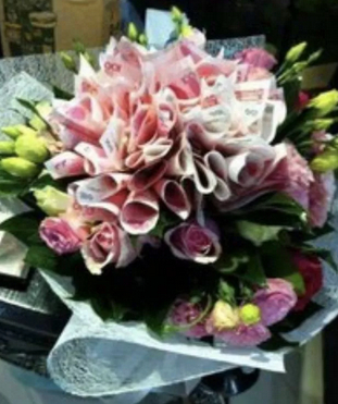 “人民币”花束,直接用人民币制作成花束。根据《中华人民共和国人民币管理条例》第六条规定,任何单位和个人都应当爱护人民币,禁止损害人民币和妨碍人民币流通。第四十三条规定,故意毁损人民币的,由公安机关给予警告,并处1万元以下的罚款。