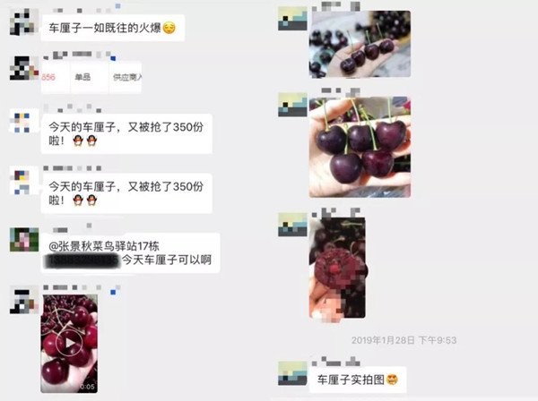 一位来自安徽四线城市亳州的消费者也向我们证实,她5年前刚从老家的精品水果店中初次接触到车厘子,而“今年串门时几乎家家户户都有车厘子来招待亲戚”。虽然社区团购还没有覆盖到她的城市,但她早已经加入了好几个当地水果店的微信群,每当水果店有新鲜车厘子到货时,就会在群内和朋友圈里上传进货和现场试吃的视频,“看了就很想买,而且价格也比以前便宜。”