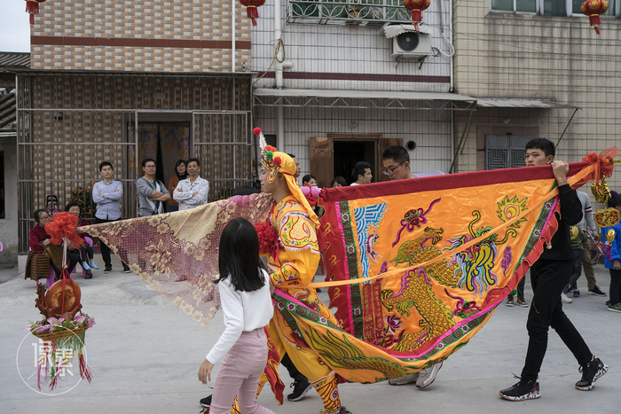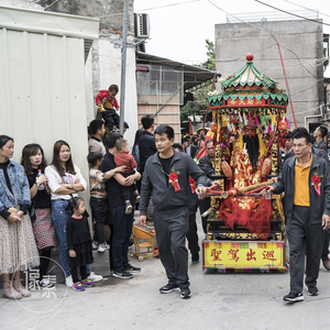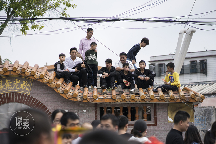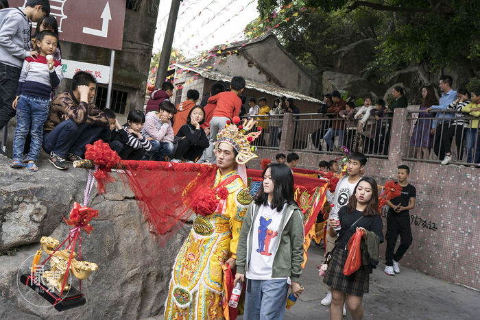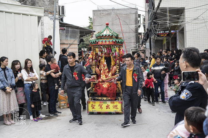 在这两天,小伙子们爬上墙头抢占最佳挂看位置。在潮汕地区,“营老爷”是一个民俗祭祀活动,在白天或晚上进行,村里的青壮年会抬着八抬大轿,抬着老爷走遍村里的大路和小巷。