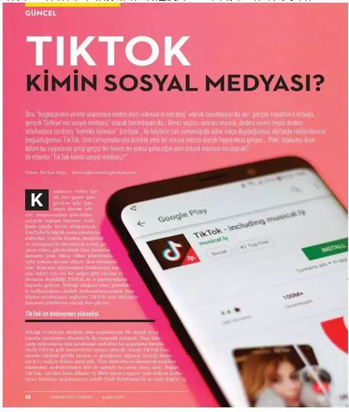 近日,土耳其知名刊物《Marketing Turkey》在2月刊的社论中提到,TikTok已经成为土耳其各个年龄段的用户普遍使用、记录真实生活的社交媒体。