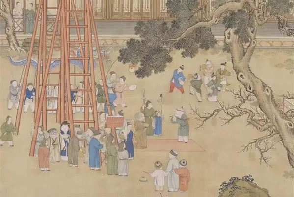 清代元宵节,民间的娱乐活动增添了大量的新内容。从元旦到元宵节,舞狮子、舞龙、闹社火、踩高跷、跑旱船、扭秧歌、打腰鼓等活动都涌到节日期间,每日社火不断,锣鼓喧天。像《清嘉录》描写灯节的诗中就有:“看残烛火闹元宵,划出旱船忙打招,不放月华侵下界,烟竿火塔又是桥。”