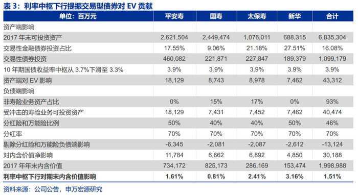 4.1利率下行对冲击测算:中枢下行喜忧参半,利好交易性债券的投资收益贡献