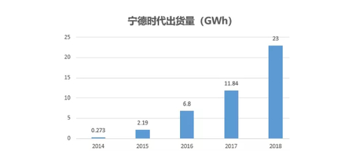过去几年宁德时代的产量高歌猛进:2016年,宁德时代在动力电池上的产能倍增,达到6.8GWh,仅次于自产自销的比亚迪。而到2017年,宁德时代则在市场份额上完成了对比亚迪的超越。2018年宁德时代和比亚迪都实现了增长,但宁德时代跑得更快,以23.52GWh的动力电池装机总电量拿下第一。