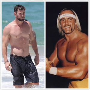 “锤哥”克里斯·海姆斯沃斯(左)将要饰演摔角明星浩克·霍根(右)。