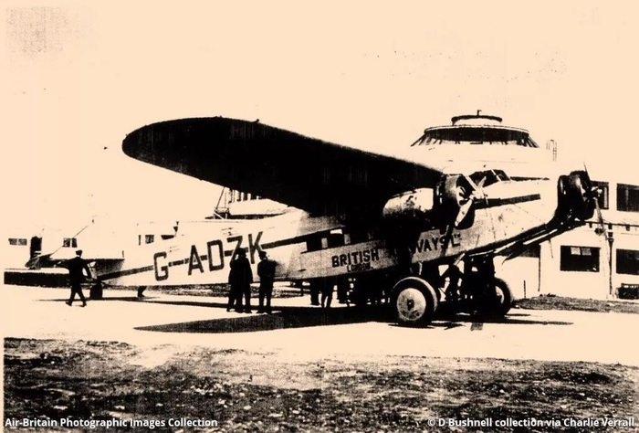 图:1936年,英国航空有限公司福克F.XII型飞机G-ADZK,在伦敦盖特威克机场。