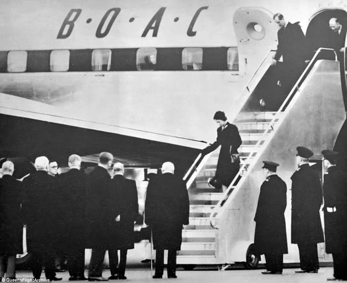 1952年2月6日,伊丽莎白替父亲乔治国王出访肯尼亚时,得知父亲去世,乘BOAC“彗星”号专机返回伦敦,时任英国首相丘吉尔和前首相、工党主席艾德礼前往机场迎接,伊丽莎白已继承王位成为伊丽莎白女王二世。