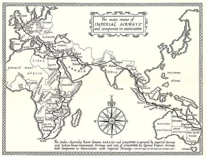 帝国航空维护了大英帝国的世界版图,航线网络除了欧洲部分地区外,还飞往南非,印度、远东、澳洲等地。