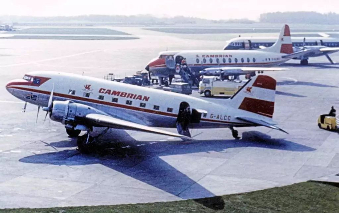 图:英国加勒比航空Cambrian Airways的DC-3客机,后面的是英制子爵号客机。