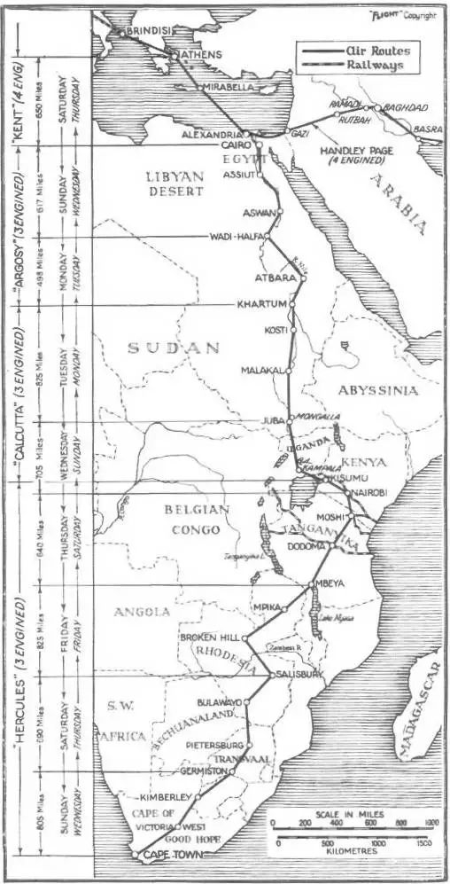 1932年1月20日,帝国航空开辟南非开普敦航线,从伦敦南克罗伊登(Croydon)机场出发,途径开罗、喀土穆、朱巴、内罗毕、姆贝亚、索尔兹伯里、约翰内斯堡,于10天后飞抵开普敦。