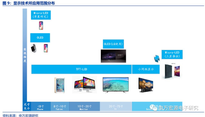 当然,LED之所以能为成长型行业,在于LED技术获取了一种全新的光效方式,这类新的光效使得光源行业带来全新的技术迭代,从LED新增的需求的视角来看,LED显示将会有潜力成为替代现有OLED、LCD显示的主流显示技术,亦或者带来传统行业的革新。我们研判LED这1-2年将会用Mini-LED替代现有的背光技术,在未来3-5年用Micro-LED对显示市场形成直接竞争关系。这也是LED具有成长性的主要看点。