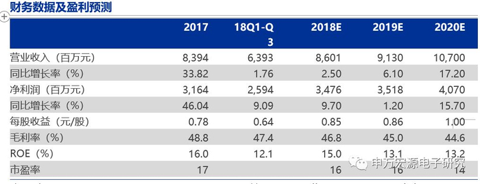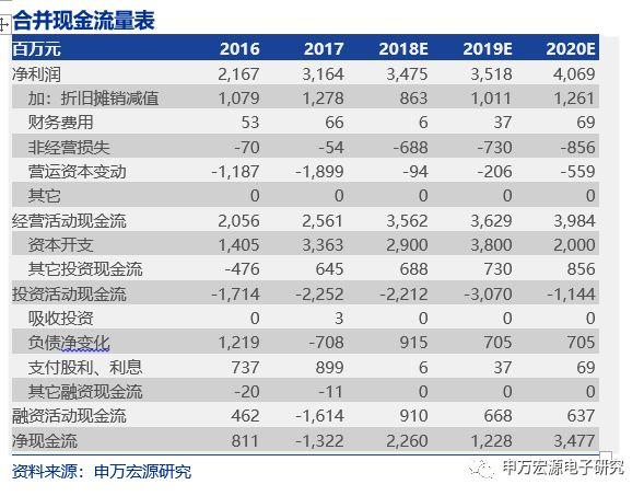 一从LED芯片光源业务来看,公司在2017年迎来了蓝绿光的业绩增长,并且加大对蓝绿光源产能的布局,考虑到18年LED芯片价格大幅回调,在2019年的公司增长会放缓,到了2020年将重回高增行列。