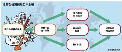 腾讯守护者计划参与了上述杭州警方打击色情漫画的行动。据李晓然介绍,上述案例并非个案,目前淫秽色情漫画已经形成了完整的产业链,包括淫秽色情漫画的源头、付费下载和技术破解团队,以及境内漫画编辑翻译团队和境内漫画网站搭建团队。此外还有负责推广引流的团伙,直至最后专门运营色情漫画的团伙。