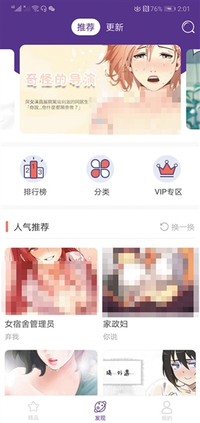 2月2日至2月15日,新京报记者通过点击不同的网页广告,下载了两款漫画类APP,其中一款名为“哇污漫画”,另一款名为“极品X漫画”。这两款APP首页的内容光言语描述就极其暴露,而可以阅读的漫画作品也均包含露骨的色情内容。