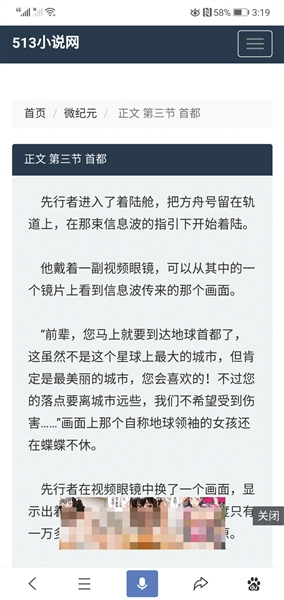 2月初,新京报记者通过手机浏览器在一家名为“513小说网”的网站阅读科幻小说时,就遭遇了色情漫画APP的弹窗。只要点击该弹窗,浏览器就会开始自动下载色情漫画APP并自动进行安装。