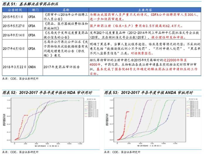 出现审评审批速度过慢的原因一方面是CFDA人手严重不足,美国药品评审中心有审评人员5000多人,而中国药品审评中心实际在岗人数只有130多人。另一方面,不少国内药企创新能力不足,不少低水平仿制药重复申报,严重占用评审资源。2015年开始的新一轮药审改革,通过扩大人员招聘,加大审批资源投入,规定审批时限,审批效率大大提高。