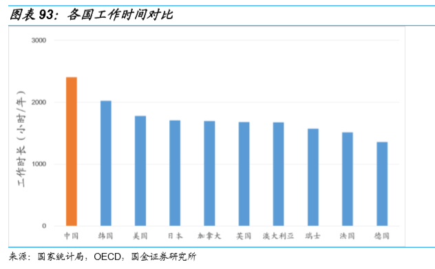同时,中国人的勤奋精神大大提高了中国CDMO公司的研发生产效率,显著缩短了订单生产周期,进一步放大了中国的工程师红利。国家统计局和经合组织的最新统计数据显示,中国城镇城镇各类企业就业人员的工作时长显著高于欧美国家,周平均工作时间为46.1小时,超过标准工时(每周40小时)6.1小时。