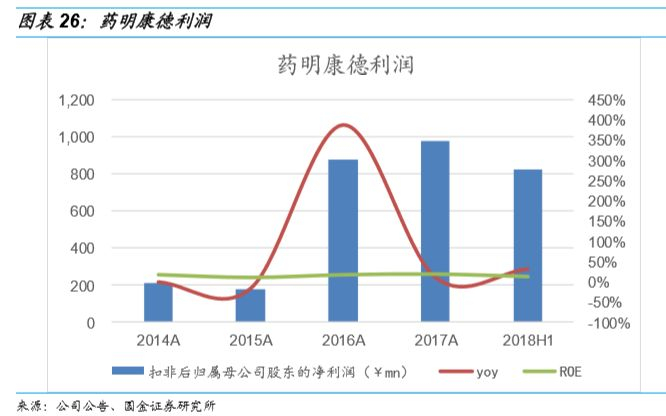 截止到2018年上半年,公司可供出售金融资产金额为13.96亿元,投资内容包含上市公司、非上市公司和投资基金。按照会计相关准则,将对金融工具每期进行公允价值评估,将差额计入当期损益,2018年上半年确认当期收益为4.3亿元,作为第一期数量相当可观。收益主要来自三家公司,即Unity、华领医药和天演药业。以华领医药为例,公司在不同阶段共投入895万美元,按目前10亿美元的市值计算,回报率接近700%。随着投资企业的业务不断发展和上市等因素带来的公允价值评估变化,公司该项投资收益将预计发展为可持续性收益项目。