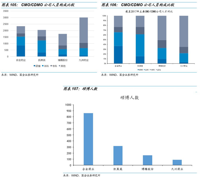 中国拥有全球最多化工及制药相关专业人才,整体呈现年纪轻、学历高、雇佣成本低等三大特点,国内CDMO企业的综合用人成本只有欧美地区的1/3-1/5。廉价、充沛的化工及制药专业人力资源保证了国内的CDMO研发能力,这样的工程师红利有利于国内CDMO企业迅速攻克全球主流化学药生产的工程技术,建立完善的研发和生产服务体系。