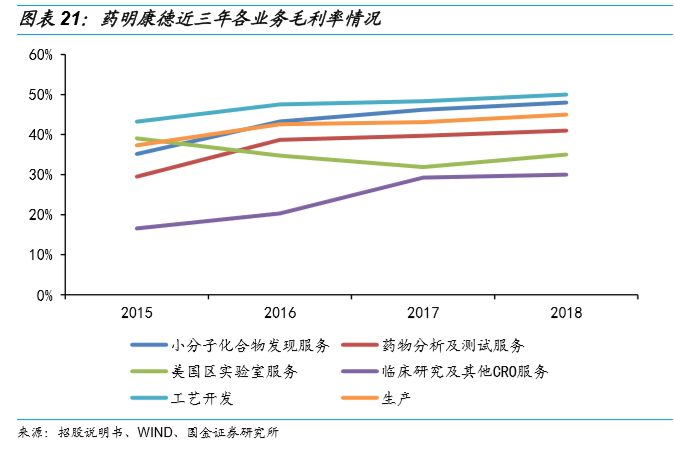公司各项业务毛利率增速稳健,其中毛利率较高的是工艺开发和小分子化合物发现服务。