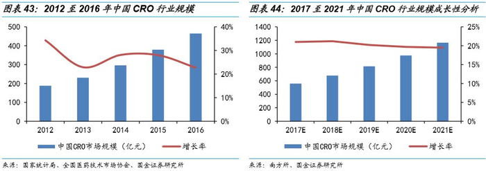 规范化、一体化是行业发展趋势,龙头公司最为受益。经过十余年的快速发展,我国 CRO 企业分化明显,一方面行业内年收入在 500 万以下的小型CRO企业依然占据主流,行业集中度仍然较低;另一方面,部分 CRO 企业积累了专业技术和优质客户资源,近年来增速显著快于行业平均水平。在药企研发投入增大、品种为王的时代,药企更加偏好与具备领域研发特长,可以较快地推进研发进度和提高研发效率的一体化大型CRO合作,仅提供单一阶段医药研发服务的企业无法满足药企在全产业链上的研发需求。因此我们认为能围绕客户需求不断拓展产业链上下游领域,通过自行设立、合作开展或外延式并购的方式为客户提供全方位、一体化的新药研究、开发、生产类服务的龙头企业,将会在规范化、一体化的行业发展趋势下成为最大的赢家。