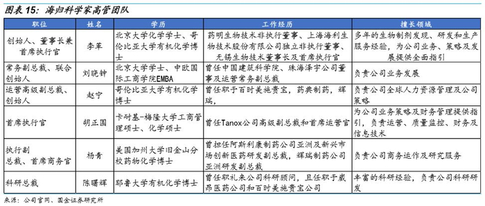 除了李革博士之外,公司其他的管理团队成员均曾于制药行业前线或国际性大企业进行过管理工作,在各自的专业领域有卓越行业经验。无论是服务于药企,还是投资前沿医药企业,还是招募科研人才,都需要管理层本身的能力得到业内专业人士的认可,药明康德总数600+海归博士的任职也从侧面说明专业人士对药明康德专业的管理团队和企业文化的认可。药明康德毅然已经形成了正循环的人才虹吸效应,即“真正懂医药,懂管理的人做出来的公司不断吸引懂医药,懂管理的人的加入”。