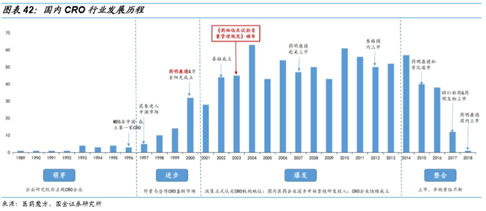 随着国家医药政策逐渐明确,医疗改革的提速和医保市场的扩容以及中国医药产业的高速发展,跨国制药企业陆续在中国启动研发业务,中国CRO产业的成长步入了一个黄金时期。