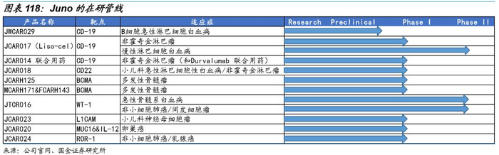 从Juno的在研管线来看,主要布局在B细胞恶性肿瘤和多发性骨髓瘤两个领域,基本上处于临床I期或者II期,临床进展最快的是B细胞恶性肿瘤,尤其在非霍奇金淋巴瘤、慢性淋巴细胞白血病和急性淋巴细胞白血病三种疾病上。等这些产品获批后,药明巨诺也可加快其产品在中国的产业化,实现共赢。