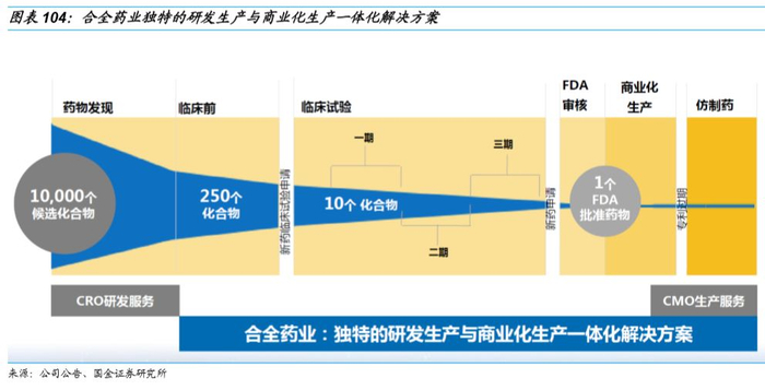 CMO业务业界领先:合全药业是中国医药定制生产研发外包服务的领导者,其CMO服务范围能够覆盖从非GMP中间体、到GMP起始物料与GMP中间体、到原料药,再到制剂这一全业务链条,满足制药企业从临床阶段到商业化生产阶段的各种定制化生产需求。
