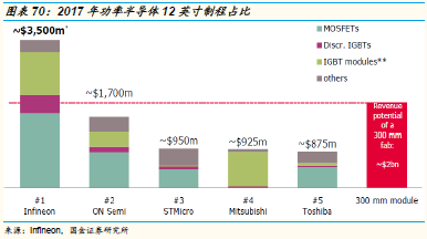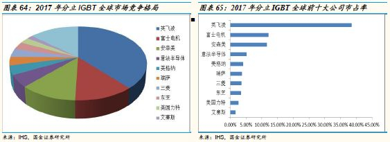 2017年,分立IGBT市场规模为11亿美元,英飞凌排名第一,市占率高达38.5%,前五大公司合计占比达到71.5%。