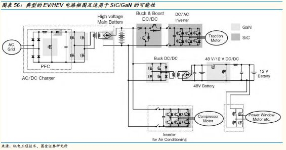 综上所述,未来5-10年第三代半导体功率器件的主要驱动力还是电动汽车和混动汽车的渗透。在电池容量成为电动车瓶颈问题的背景下,提高充电功率和效率,节省行车过程中的能耗等问题是提升电动车续航能力的有效途径,因此,常规车用硅基功率器件均具备被第三代半导体功率器件替代的可能性。