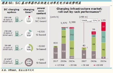 SiC基功率器件在快速大功率充电方面优势明显,预计2017至2023年均复合增速达到21%。