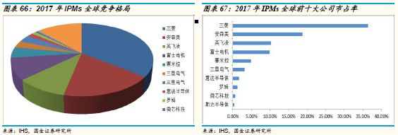2017年,IPMs市场规模为15.7亿美元,三菱排名第一,市占率为36.4%,前五大公司合计占比达到80.2%。