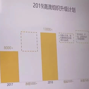 在今年2月的月度全员会上,程维宣布了接下来滴滴的新方向:2019年滴滴将在安全技术、产品和线下司机管理及国际化等重点领域加大投入,继续招聘2500人,2019年年底员工总人数将和去年底的13000人持平。