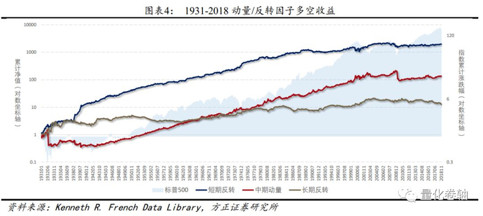 动量/反转消亡史:多空组合 3研究发现,美股呈现短期反转,中期动量,长期反转的特点,对应的周期是最近1~20天,20~250,250~1250左右。