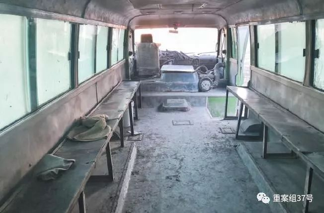 这是一辆经过简单改装的车辆。车上左侧、右侧两条钢铁焊成的长凳和残留的后座,左强坐在后方靠左位置。因为担心影响司机在驾驶中后视镜视线受影响,在车辆行驶时,所有人都没有打开矿灯。