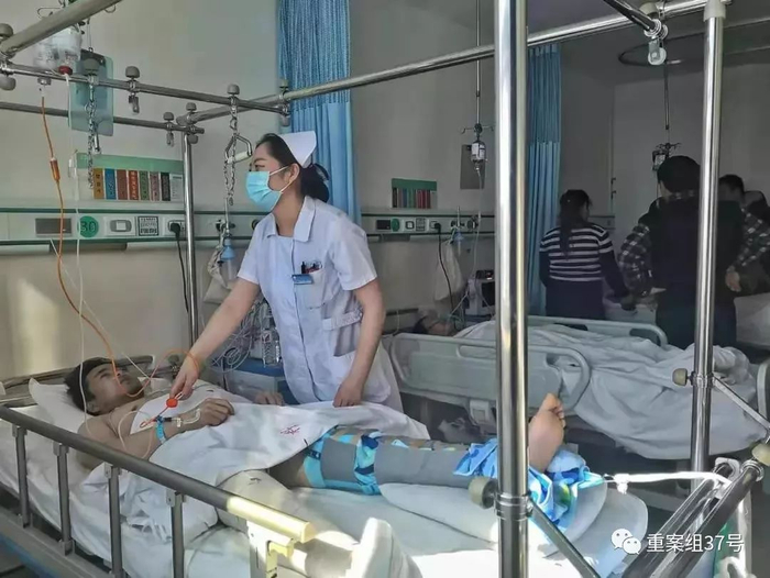 左强就在骨一科病房内接受治疗,他被诊断为盆骨骨裂、小腿骨折,胸部也遭受挤压。