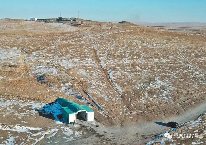2月24日,内蒙古西乌旗银漫矿业公司,西北方向约三公里处的事发井口,现场已经拉起警戒线,入口处停放一辆黑色特警车辆。    新京报记者 王飞 摄