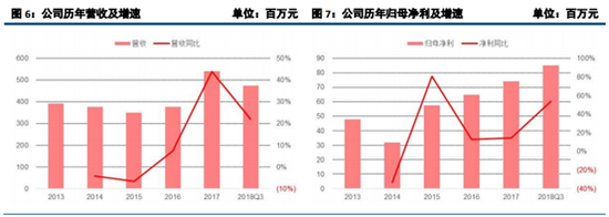 具体相关情况表现在财务报表上就是公司近年来业务也相对平稳,增速并没有爆发性增长,2018年前三季度营收增长速度甚至还较2017年有了较大幅度的下滑。具体情况如图: