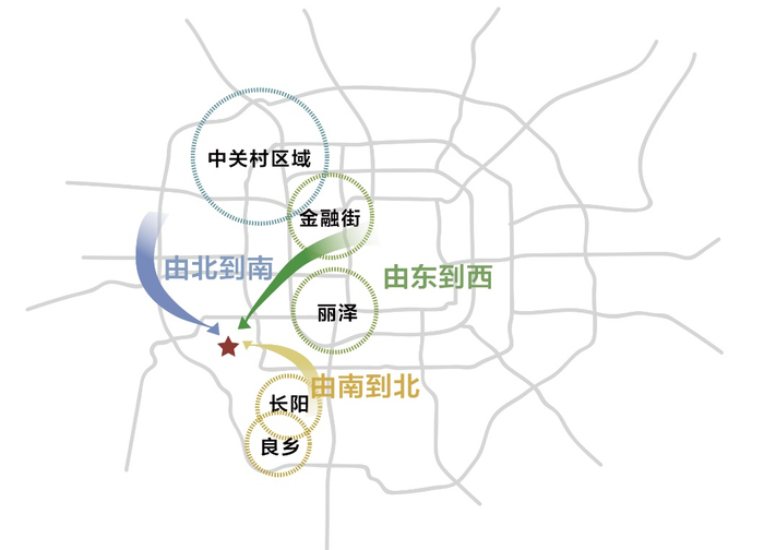 青龙湖区域位于丰台区,享有国家“文化向西”政策的大力支持,被定位为国际文化会都。青龙湖区域之所以受到政府政策的青睐,离不开城市规划的交通位置优势以及不可复制的山水资源和低密度稀缺属性。