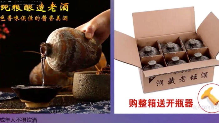 短视频平台上曾发布的洞藏酒广告。视频截图