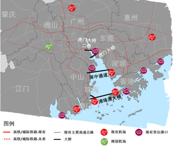 三是轨道设施对接,建设环湾区机场高铁,实现各大机场1小时无缝快速中转。