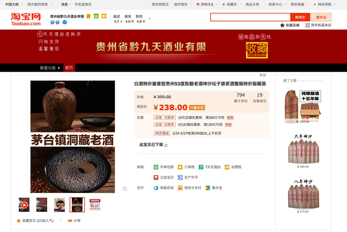 “洞藏酒”涉三无续:部分产品被下架后淘宝店仍销售