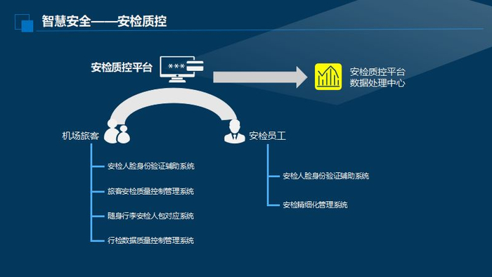 安检质控平台主要采取综合应用图像分析、移动互联网、数据统计分析等技术,为旅客身份验证、旅客行李 X 光图像复查等关键环节提供工作辅助技术手段,对安检工作全过程进行数据可视化监控。通过安检身份验证辅助系统、安检质量控制管理系统、安检工作精细化管理系统、智慧判图系统等实现质量控制。