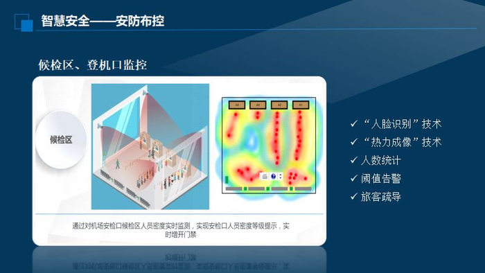 通过登机口监控系统,人脸闸机系统等扩充安防监控功能。