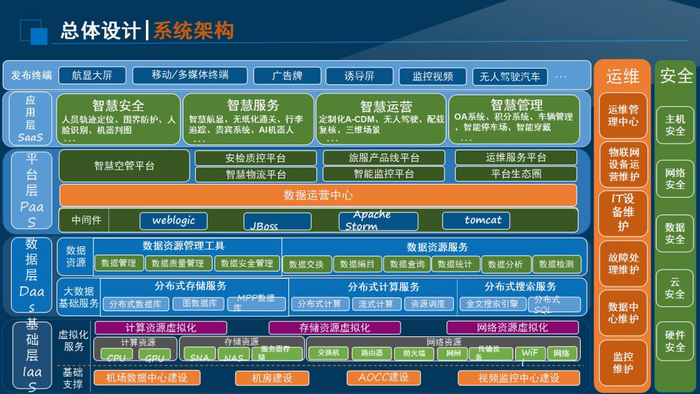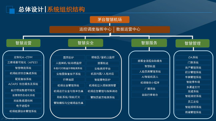 茅台机场中小型机场协同一体化规划主要建设内容包括四个方面内容,即智慧安全、智慧服务、智慧运营、智慧管理。