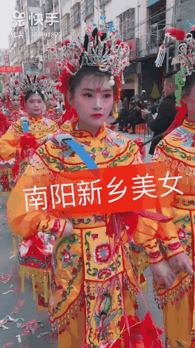 在队伍中的“镖旗美女”和“袍篮美女”,